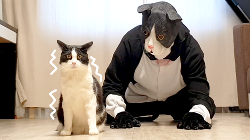 Сделали громадную живую копию кота. Как кот отреагирует ?