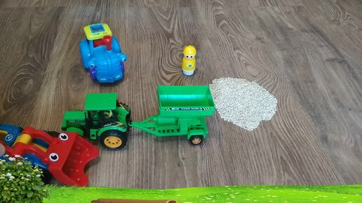 Синий Трактор Гоша везет коровку и корм на ферму.