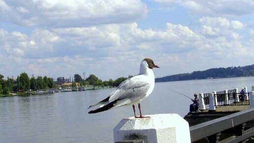 Птицы на реке Костроме радуются лету. Утки в волнах прибоя, чайки и голуби на набережной