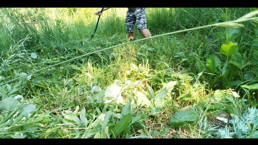 Уборка бурьяна, обычной косой, высокая трава, неожиданный наблюдатель