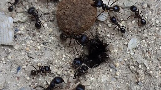 Муравьи стащили корм кота, не рассчитав его габариты. Пришлось прийти на помощь
