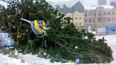Во Владивостоке на центральной площади рухнула главная городская елка