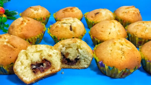 Самый пышные кексы, маффины на кефире с шоколадной начинкой