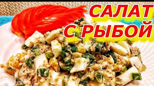 Рыбный Салат на НОВЫЙ ГОД с Сардиной, Зеленым луком, Яйцом. На Праздничный Стол