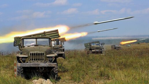 Стрельба РСЗО "Град" и миномет "Сани" (Россия)/Shooting MLRS "Grad" and mortar "Sani" (Russia)
