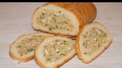 С такой закуской из батона вы не останетесь голодным.Фаршированный батон.