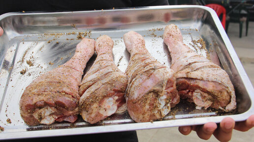 Жареные ножки индейки с белым соусом.