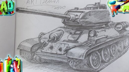 Как нарисовать танк Т34 85 Советский танк карандашом