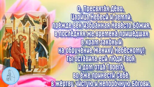 Молитва Пресвятой Богородице в честь введения Ея во храм