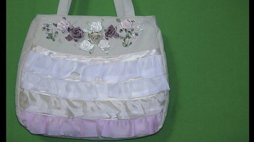 Шьем сумку с кружевами и розами из атласных лент