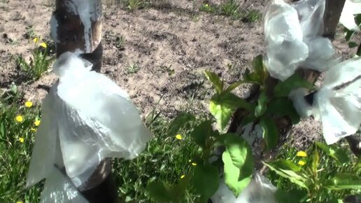 Зеленая листва на прошлогодних прививках яблони 31 05 2014. Last year's vaccination on apple.