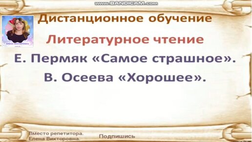 Дистанционный урок по литературному чтению Е. Пермяк Самое страшное, В. Осеева Хорошее.