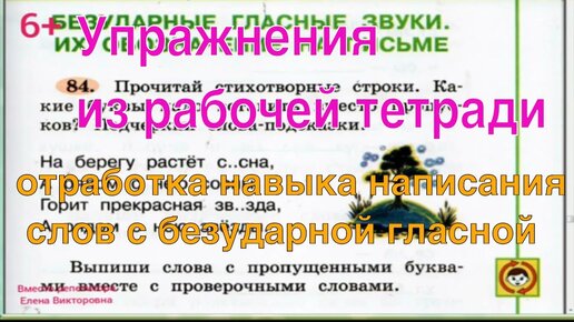 Безударные гласные и их обозначение на письме. Упражнения из рабочей тетради