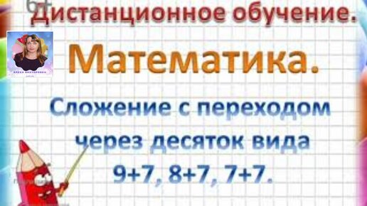 Дистанционный видеоурок по математике Сложение с переходом через десяток вида 9+7, 8+7, 7+7