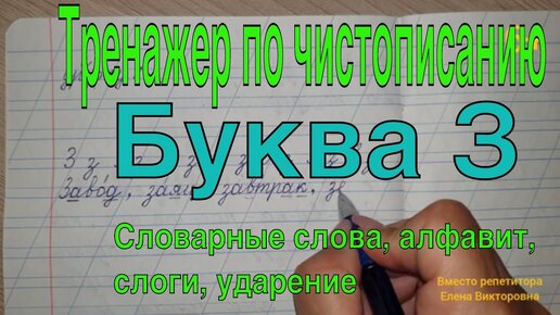 Тренажер по чистописанию. Буква З. Алфавит.