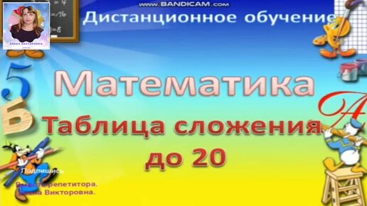 Дистанционный видеоурок по математике Таблица сложения до 20