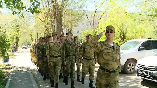 «Парад у дома»: волгоградские росгвардейцы поздравили ветерана с Днем Победы