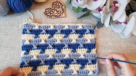 Вяжем рельефный, цветной узор "Крестики" крючком.