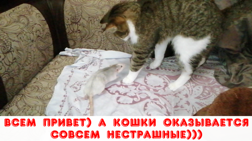 Бесстрашные крысята, которые не боятся кошку🙀🐭🐭