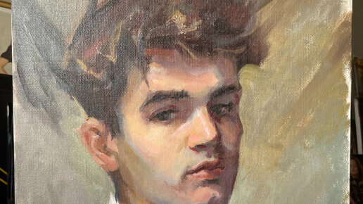 Пишу мужской портрет маслом на холсте, обучаюсь, копируя работу Даниэла Герхартца