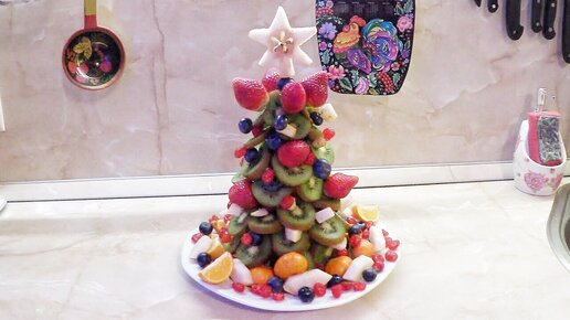 Новогодний рецепт / Ёлка из фруктов / Украшение из фруктов / Делаем с детками
