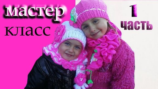 Вязаный детский комплект крючком берет и шарф / Как связать берет/ 1 часть.
