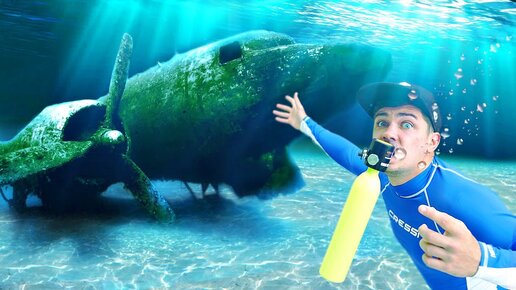 Нашел гигантский самолет под водой, с помощью акваланга на дне карьера!
