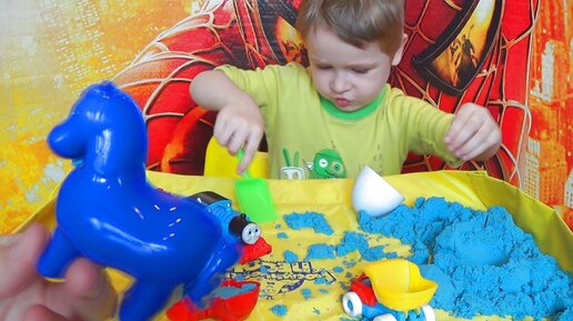 Играем в игрушки - кинетический песок, машинки, паровозики - развлечение для детей