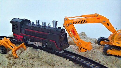 Строим железную дорогу для поезда - играем в игрушки на улице - видео для детей