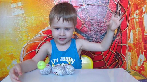 Макс открывает Киндер сюрпризы игрушки