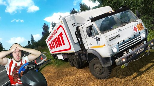Вылетел с Дороги НА Камазе - Едем в Россию Euro Truck Simulator 2 + Руль