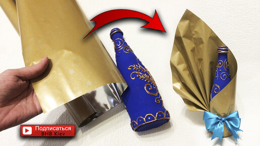 Как красиво упаковать бутылку в подарок . Простой способ. Упаковка бутылки