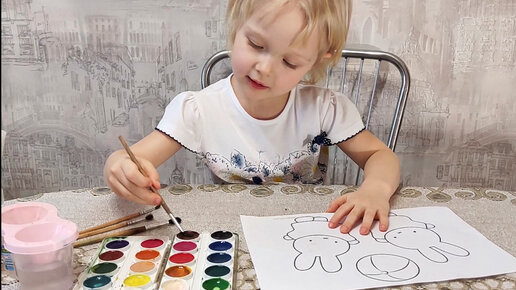 Как научиться рисовать? Рисуем красками, в 3 года. Раскраска Хелло Китти.