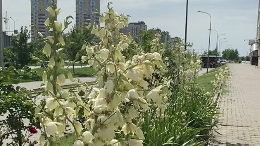 Юкки возле подъезда скоро отцветут