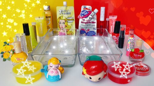 YELLOW vs RED mixing lipstick and mascara into slime!