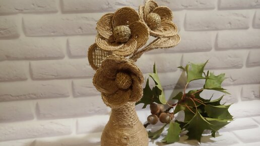 Ваза с цветами из джута своими руками