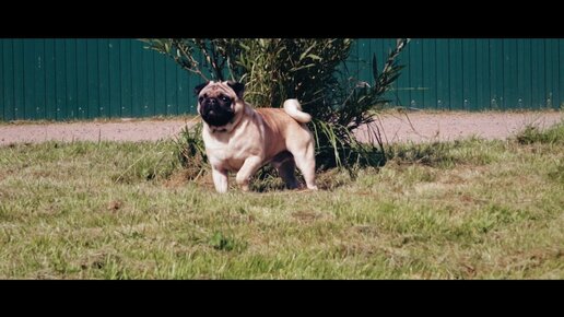 Как ведет себя мопс Жорик за двором без поводка. Cinematic video