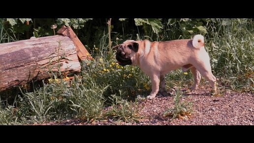 Мопс Жорик выслеживает цель.
