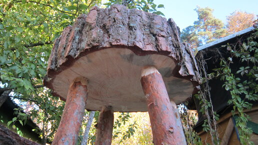 Самодельный садовый стол из среза дерева