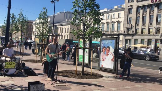 Выступление на Невском проспекте с исполнением кавер-версии в Санкт-Петербурге.
