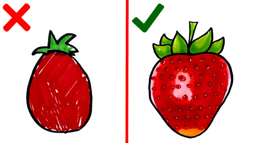 Рисуем клубнику правильно и неправильно. Рисунки Юльки