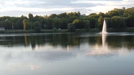 Озеро с фонтаном в центре города в Российской глубинке