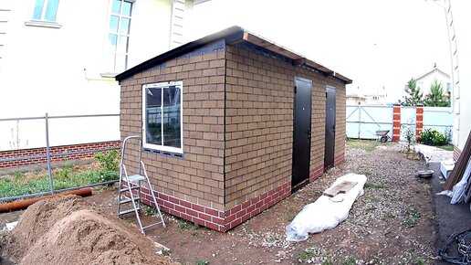 Закончил обшивать хозблок фасадной плиткой HAUBERK от " ТЕХНОНИКОЛЬ". Показываю как выглядит.