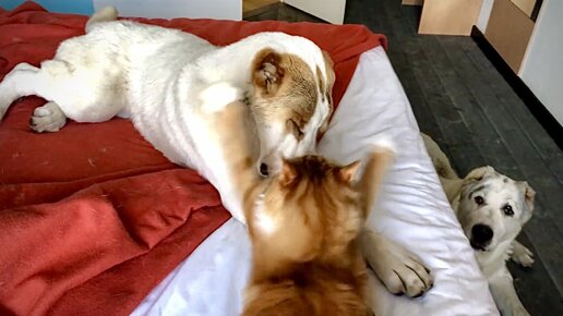 Два алабая и кот делят кровать || Алабай смотрит телевизор