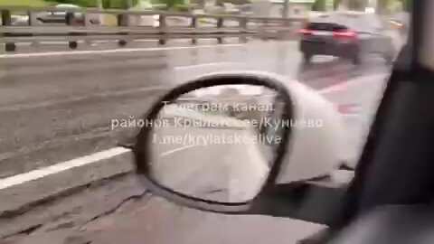 На Крылатской улице вместе с дождем смыло асфальт с дороги