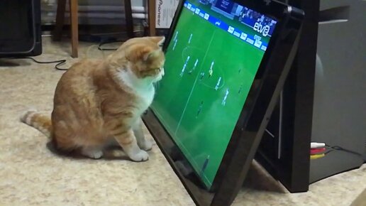 Рыжий кот смотрит футбол