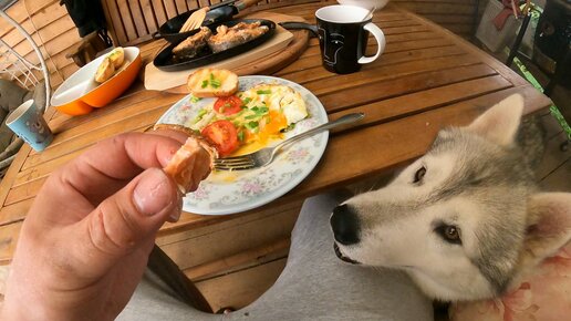 Великолепный завтрак который хочется разделить с хаски.