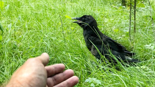 Раненый Ворон в Лесу Реакция собаки на птицу