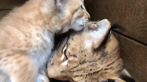 Семейство рысей умиляют посетителей зоопарка