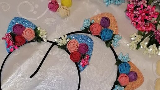 Не ожидала, что ободок с ушками украшенный мелкими цветами вызовет восторг у моей дочери. А я на него потратила всего 15 минут